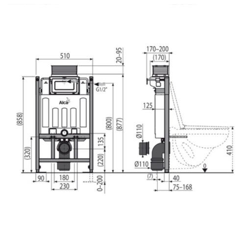 ALCAPLAST (850mm)- Wall Hung Toilet Frame & Concealed Cistern