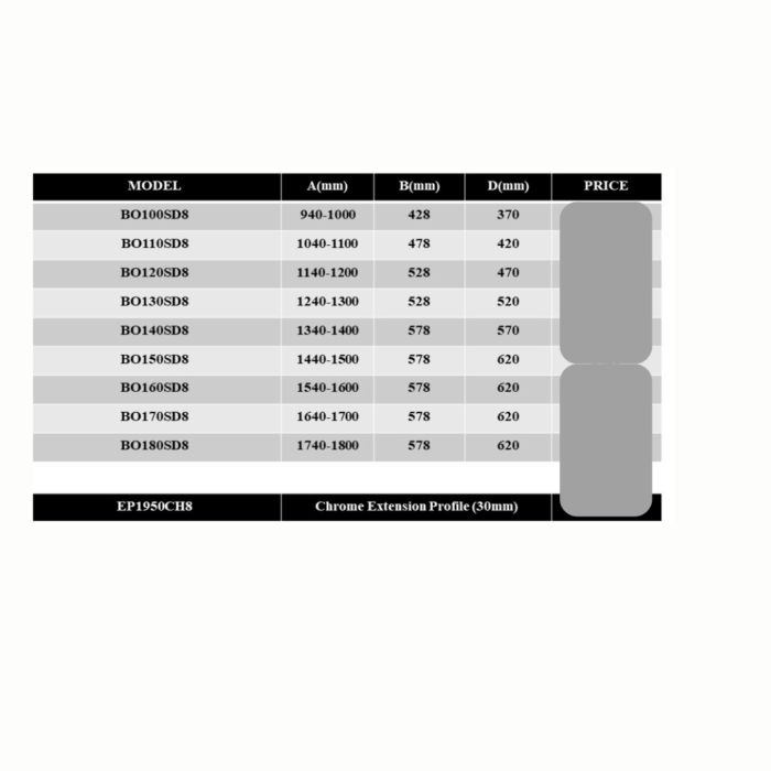 AROMA-Sliding Shower Door (1950mm, 8mm Thickness) BT