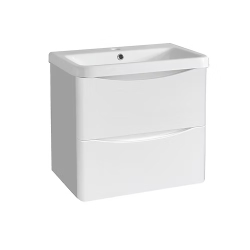 PHOENIX White 600mm Wall Hung 2-Drawer Handleless Unit and Basin-SCN