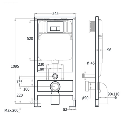 SENSOR (1095mm) – Wall Hung Toilet Frame & Concealed Cistern